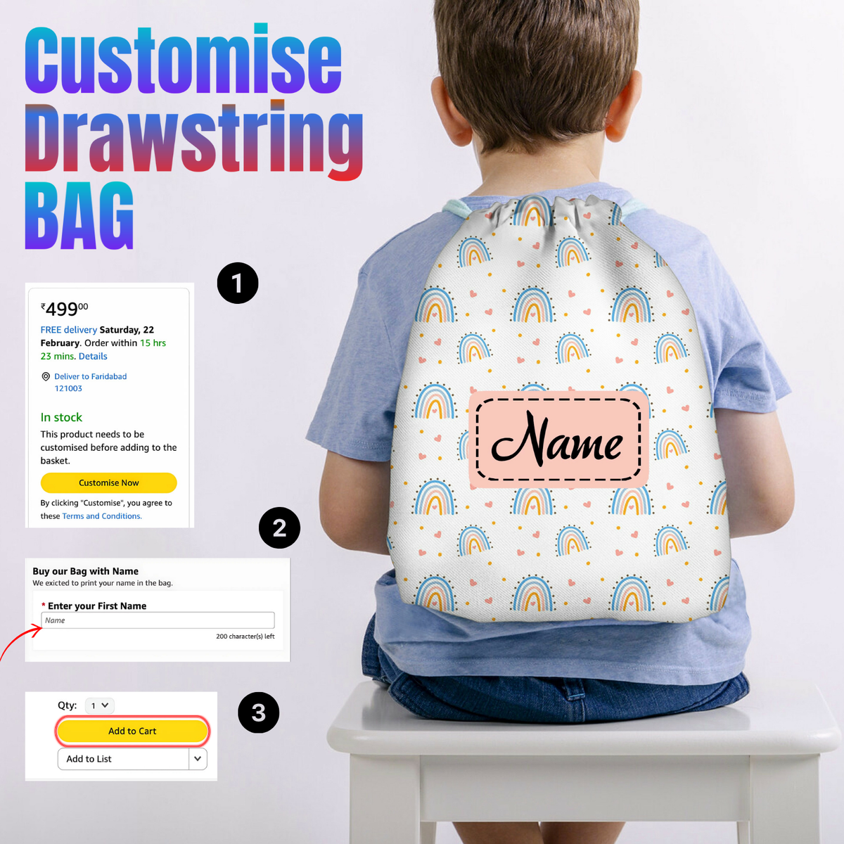 Inform when this item available Baby of Mine Premium Waterproof Drawstring Backpack For Swimming Gym Yoga Tuition For 3-10 Years Girls And Boys - Rainbow Print